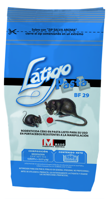 Cebo rodenticida potente, rápido y muy palatable en forma de pasta fresca a base de Brodifacoum.