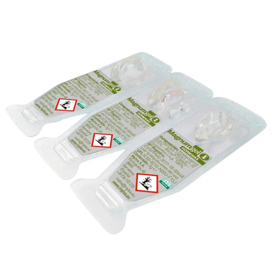 Trampa con gel insecticida para hormigas, listas para su uso.