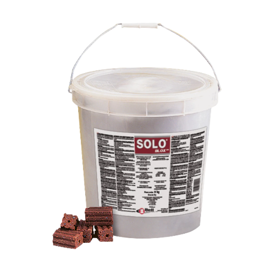 La novedad de Solo® Blox es la combinación de su bloque de extrema calidad con Brodifacoum, anticoagulante de segunda generación que causa una gran mortalidad con una sola toma de cebo a diferencia de otros anticoagulantes. Esta última característica lo hace particularmente interesante para el control de ratones.